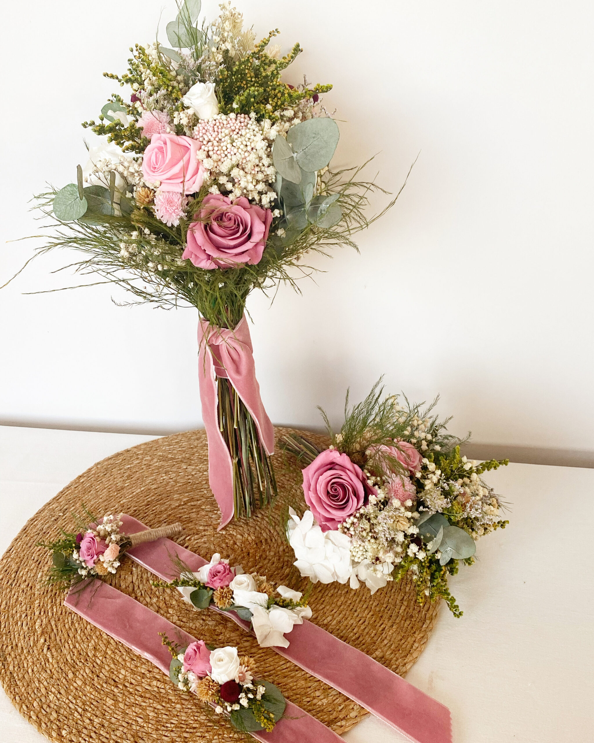 - Pulseras a juego con tu ramo para compartir con hermanas o amigas las mismas flores que te acompañan ese día.